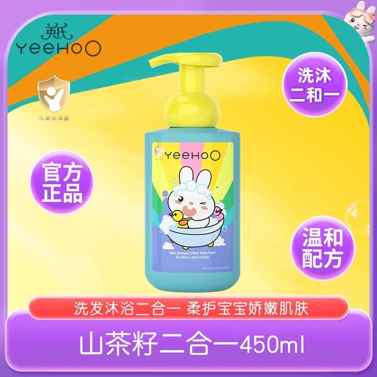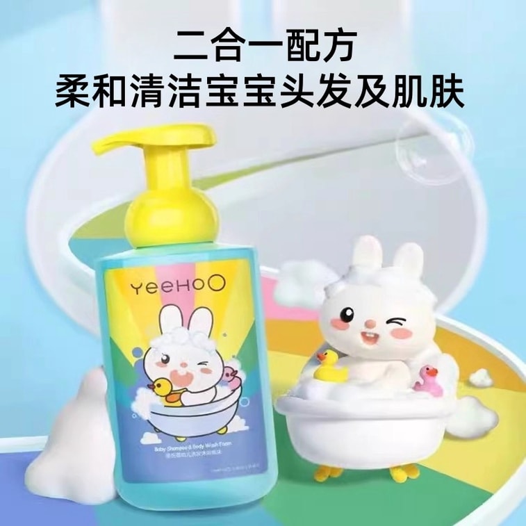 [중국 직송] 잉시 바디워시 & 샴푸 2-in-1 신생아용 샴푸 & 포밍 바스, 블루, 450ml/병 (카멜리아씨드)