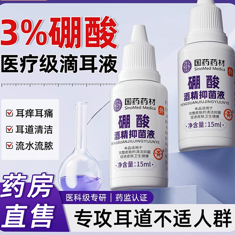 Double antibacterial, anti-inflammatory and antipruritic: The core ingredients are boric acid and medical alcohol, which exert their antibacterial effect by binding to bacterial proteins, killing both bacteria and fungi. It provides rapid relief from itching, especially for otitis externa and ear canal eczema.