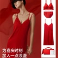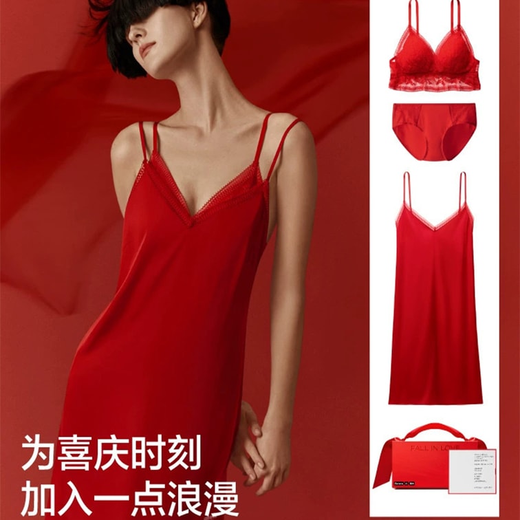 [중국발 다이렉트 메일] 자오네이 레드 플랜 303에어 브라, 팬티, 나이트가운 세트, 섹시 레이스 언더웨어, 레드 벤밍니안 S (70A/70B)
