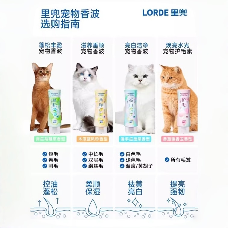[중국 직배송] 리도우 브라이트닝 & 모이스처라이징 애완동물 컨디셔너 50ml 바닐라 & 튜베로즈 향, 손상된 털을 깊이 복구하고 윤기를 더해줍니다 | Yami