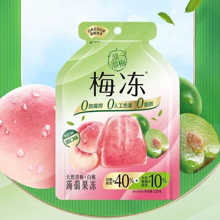 류류메이 매실 젤리 (NFC 과육 곤약 젤리, 백도맛) 120g [천연 매실 젤리, 갓 짜낸 과일] [빠르고 부드러운 식감]