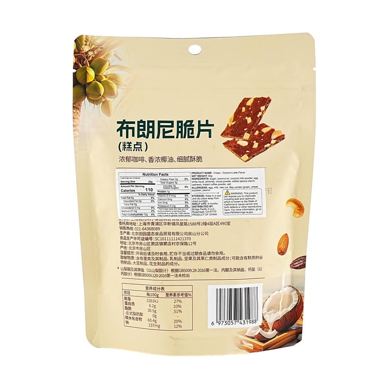 브라우니 크리스프, 코코넛 라떼 맛, 초콜릿 너트 크래커, 2.11온스 【튀기지 않고 팽창하지 않음】