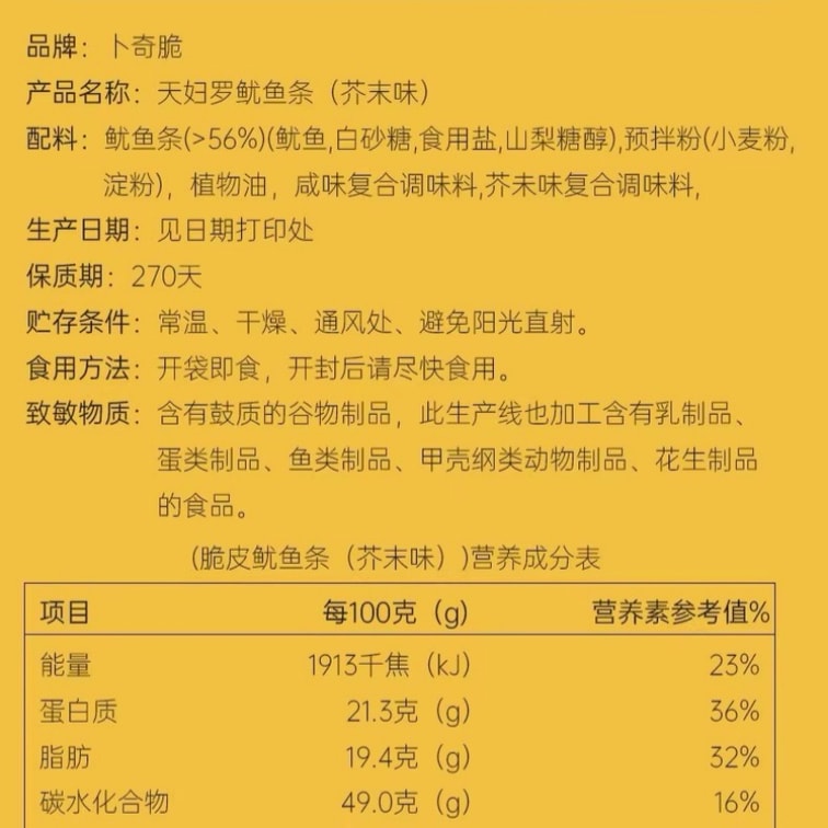 [중국 직배송] 부치 바삭하게 튀긴 오징어 스트립 30g*3팩 (오리지널/와사비/마늘버터)