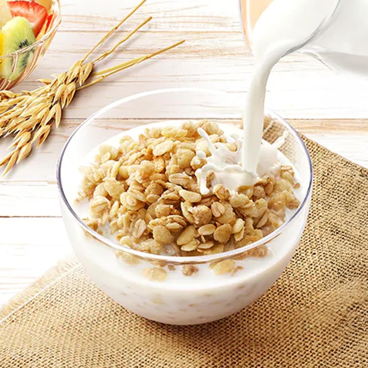 튀기지 않고 구운 건강한 오트밀로 바삭하고 바삭한 식감과 뚜렷한 곡물, 그리고 통풍이 잘되는 느낌