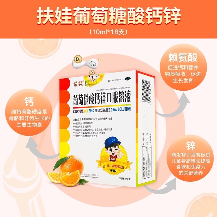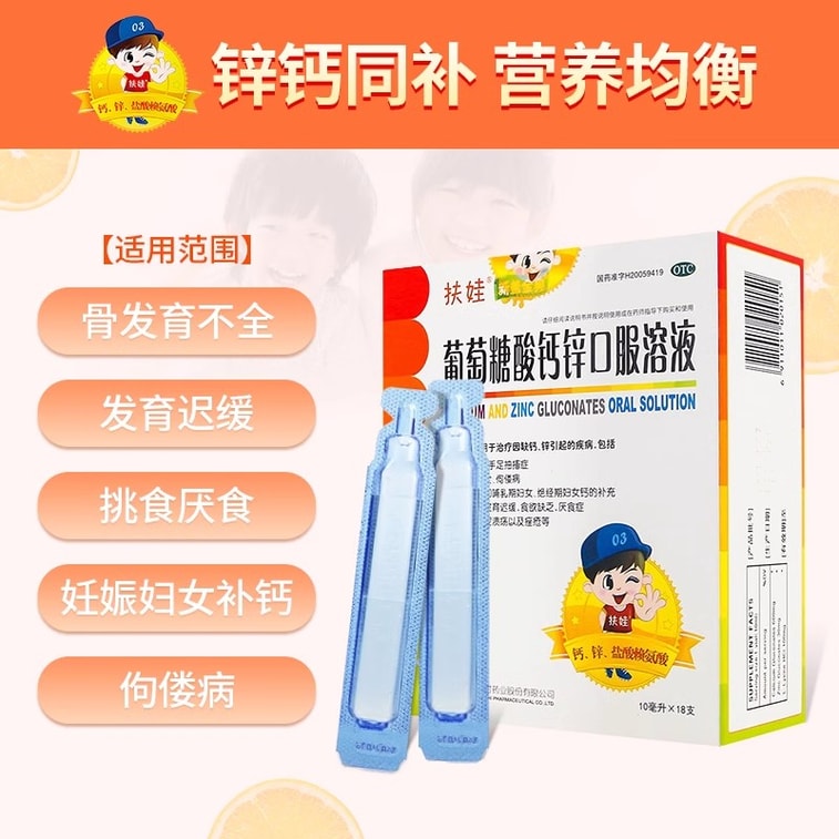 [중국 직배송] 푸와 칼슘 글루코네이트 정제 및 아연 경구용액, 어린이 및 임산부용 칼슘 보충제, 리신, 칼슘 및 아연 결핍으로 인한 질병 치료에 사용, 18 바이알/박스
