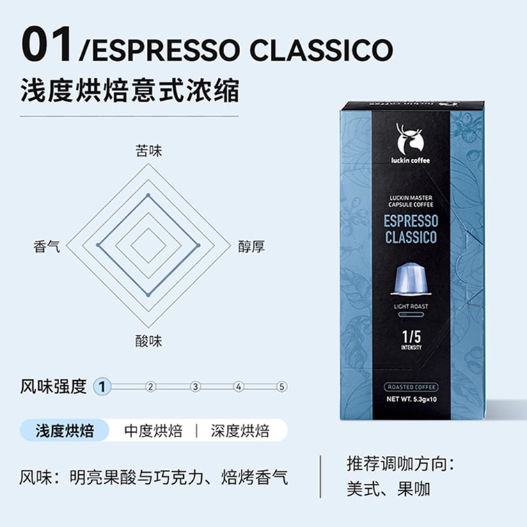 [중국에서 다이렉트 메일] 루이싱 커피 오리지널 수입 캡슐 커피 비즈 네스프레소 캡슐 머신에 적합 01 에스프레소 - 라이트 로스트 10개/박스
