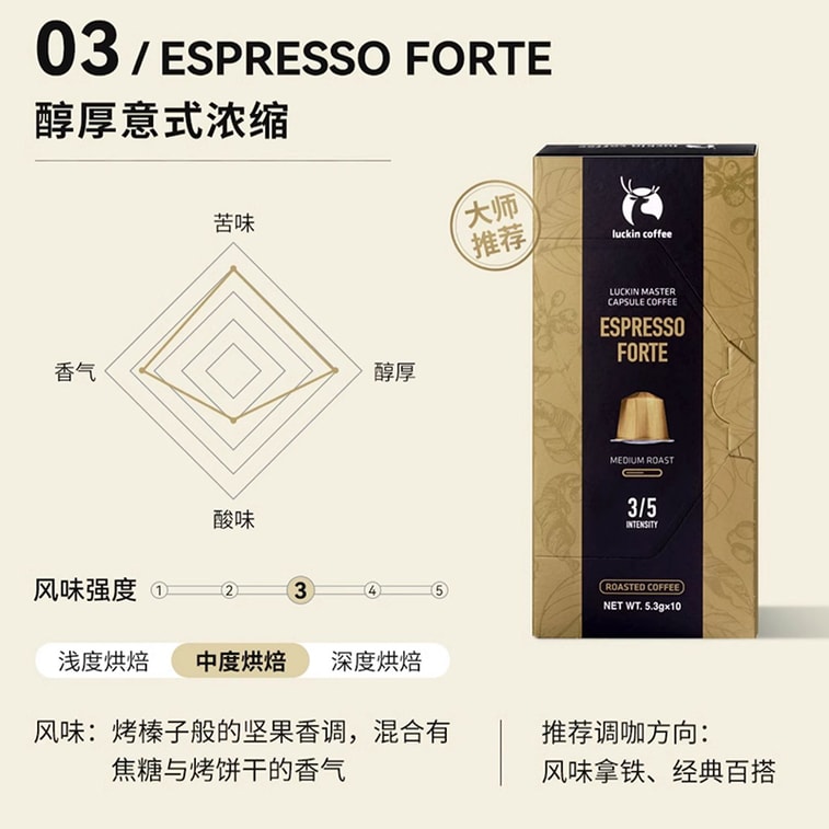 [중국에서 다이렉트 메일] 루이싱 커피 오리지널 수입 캡슐 커피 비즈 네스프레소 캡슐 머신에 적합 03 멜로우 에스프레소 - 미디엄 로스트 10개/박스
