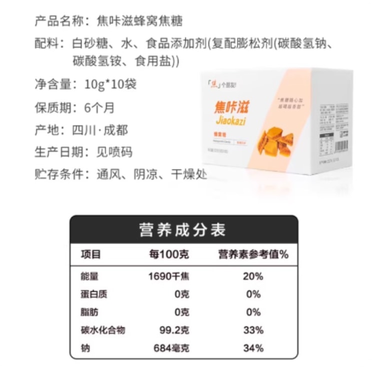 Jiao Ka Zi 캐러멜라이즈드 허니콤 캔디, 커피 설탕 큐브, 카멜롯 설탕 패킷, 100g*1박스 | Yami