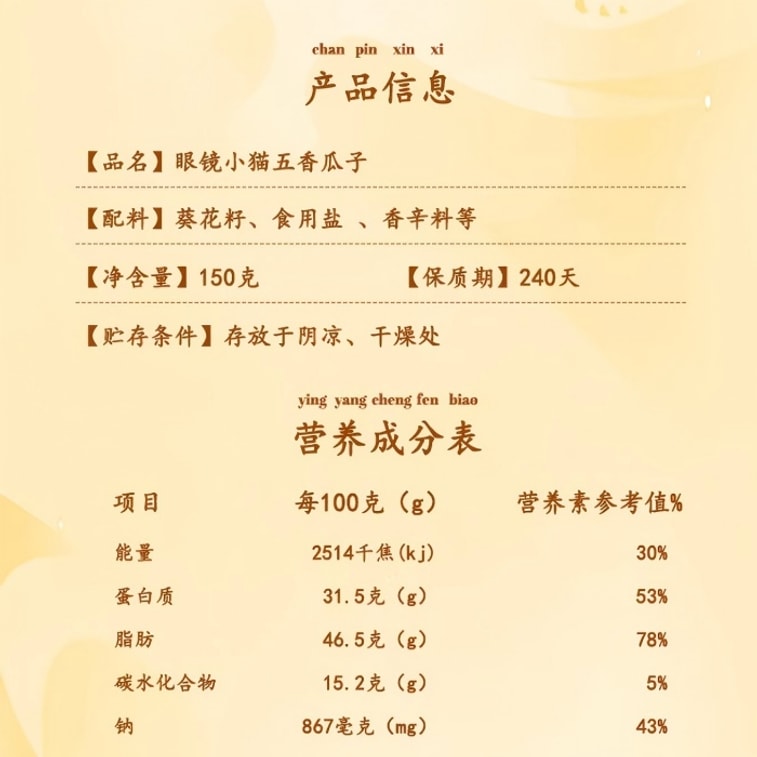 Casual Snack Sunflower Seeds Specialty 【Five-Spice Sunflower Seeds】 150g/bag