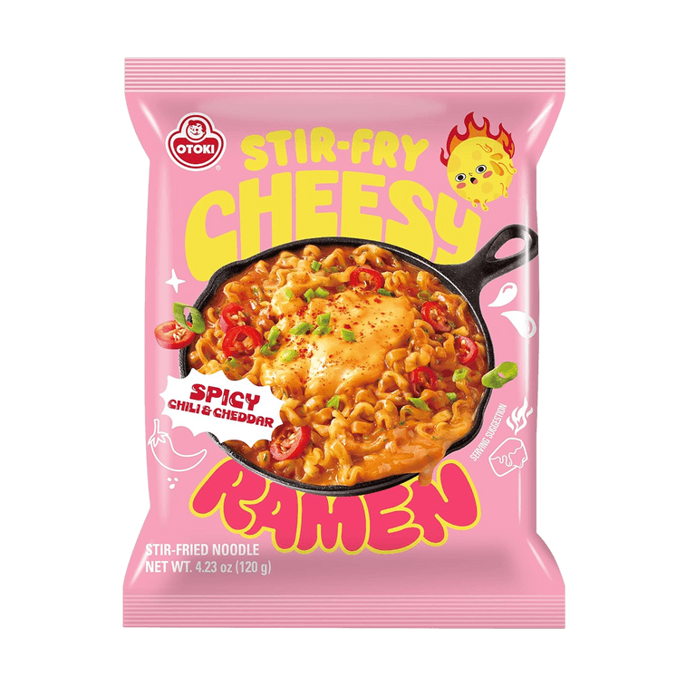 치즈 라면, 매콤한 칠리 & 체다 맛, 치즈 & 매콤한 볶음 한국식 인스턴트 라면, 4.23oz*4팩