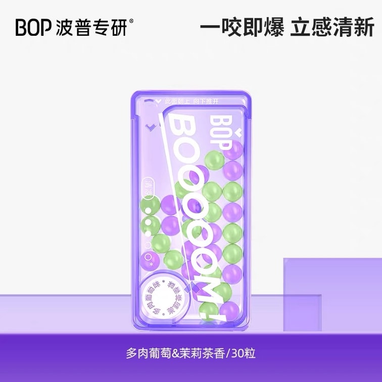 BOP 구강 관리 블로우 껌 캡슐, 한 상자에 두 가지 맛, 저칼로리, 무설탕, 오래 지속되는 상쾌한 숨결, 30캡슐. 포도맛과 자스민차맛. 데이트 전 입 냄새 제거에 딱! 껌 대신 간편하게 즐길 수 있는 간식. 키스할 때 필수! 데이트 필수! 캡슐 하나가 목구멍에서 톡 터지면서 상쾌함을 선사합니다!