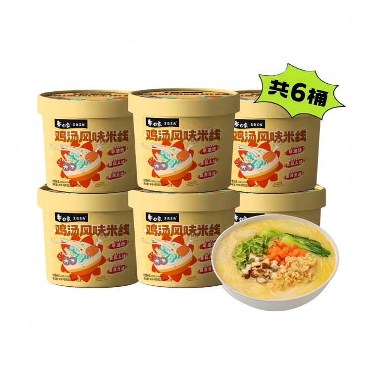 [중국 직송] 바이샹 바이샹 진한 닭고기 육수 맛 쌀국수 [윈난 클래식 크로싱 더 브리지 쌀국수] 쫄깃하고 빠르게 익는 쌀국수, 야식과 허기 해소에 딱, 버킷팩 480g (총 6개입)