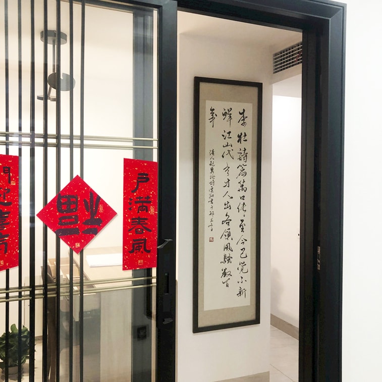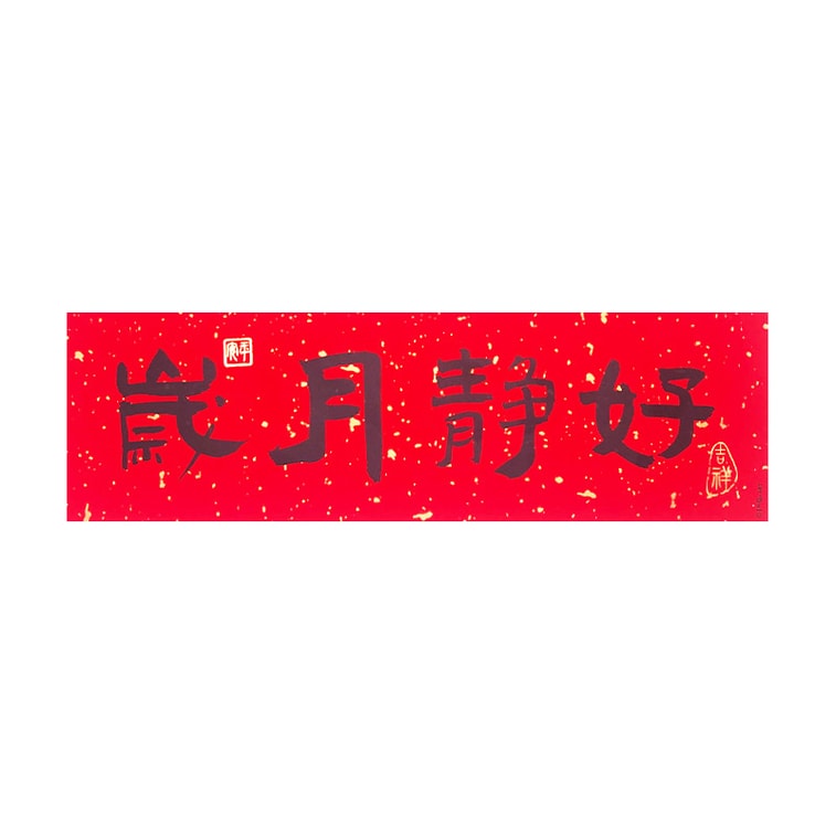 오리지널 제품 라이프스타일 2026년 말의 해 오리지널 디자인 - 가로 문구: 평화로운 한 해 - 금박 장식이 있는 새해 중국식 서예 대련 한 쌍 - 설날 - 말의 해
