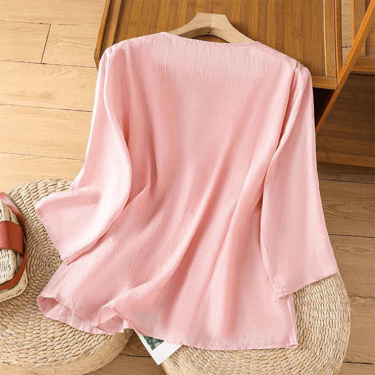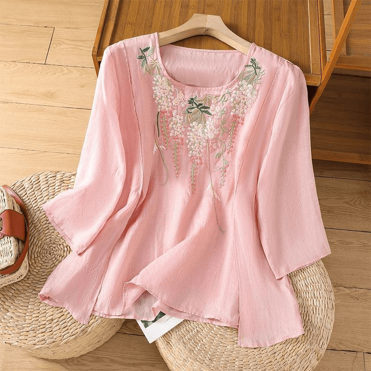 ASIS 새로운 중국 자수 미드슬리브 티셔츠 탑 - 핑크 3XL