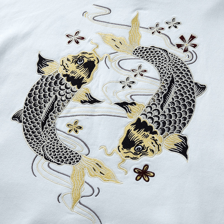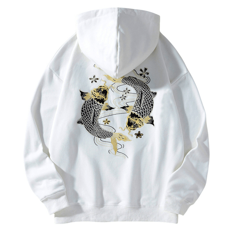 ASIS 중국 스타일 국가 트렌드 잉어 자수 후드 루즈 스웨트셔츠 - 화이트 3XL