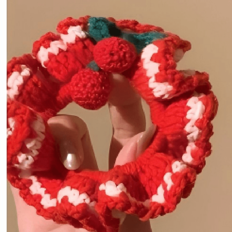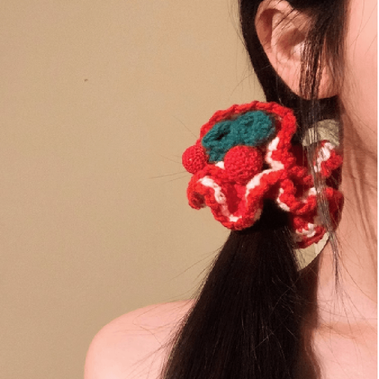 Christmas Carol ~ Red Cherry Knitted Scrunchie 1PC