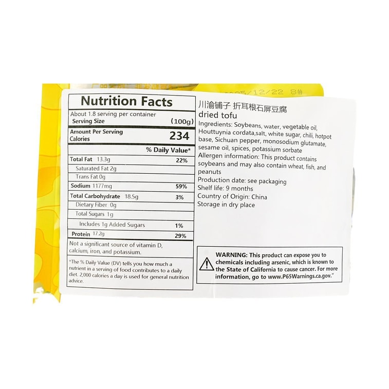 추안위 상점: 접은 귀뿌리와 배송용 두부 6.34온스