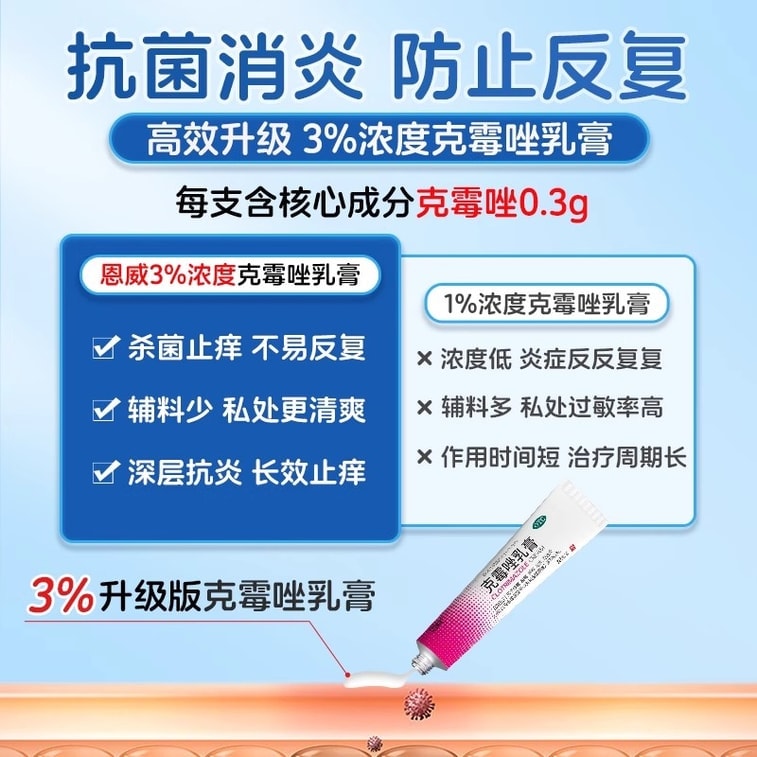 효모 감염 치료 : 핵심 성분은 항균 및 항소양제입니다 . 3% 클로트리마졸은 더욱 효과적입니다.