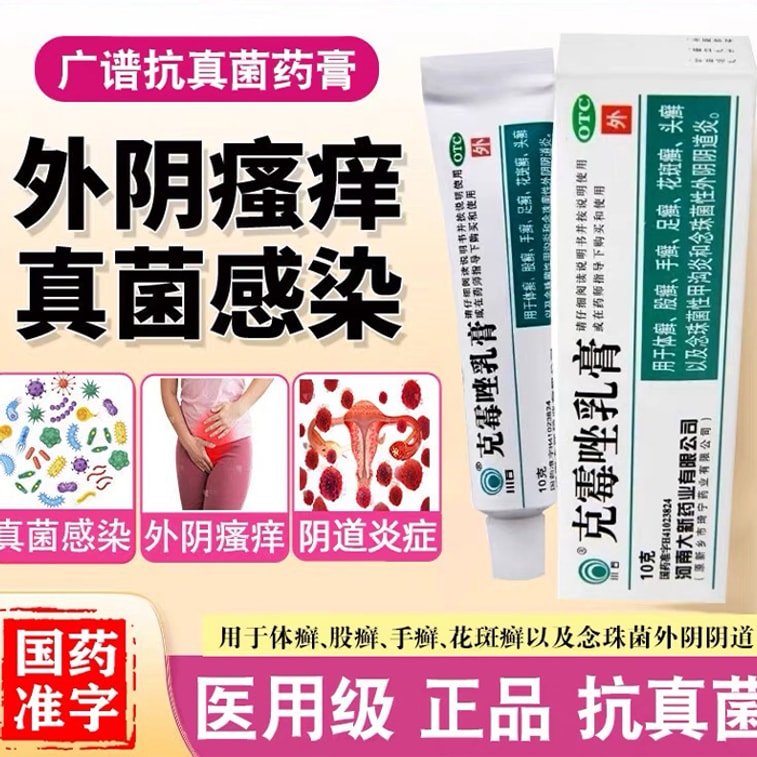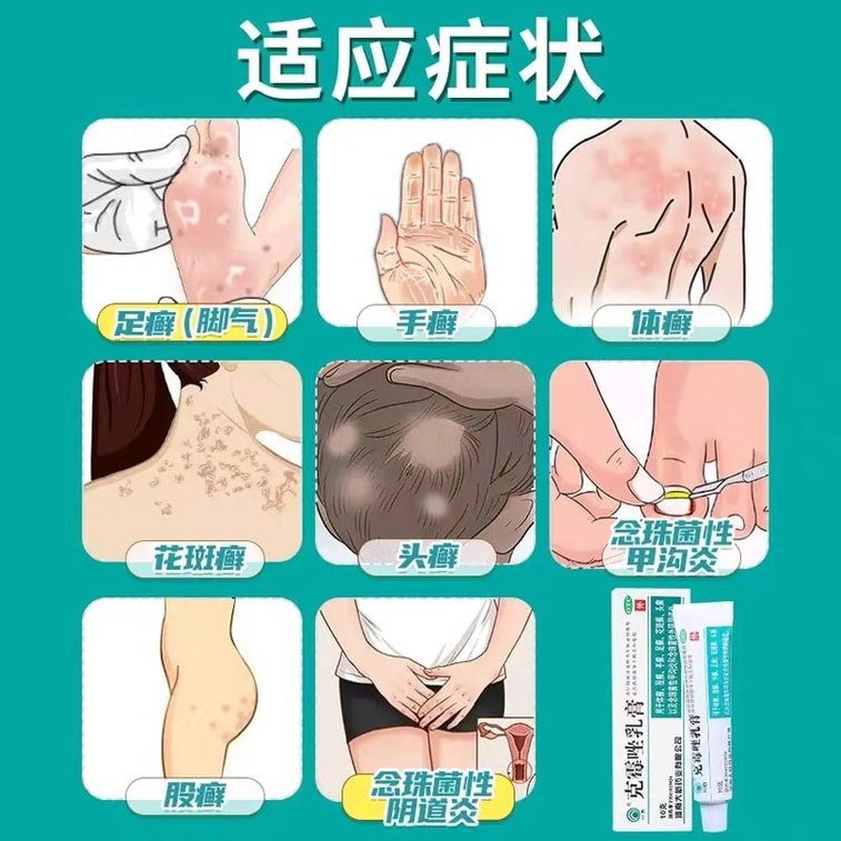 질염, 부인과용, 조갑주위염, 체부백선, 두부백선 및 피부약용 항진균제인 Chuanshi Ke 크림 10g.