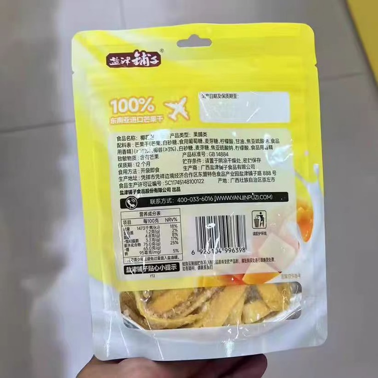 YANJINPUZI 옌진샵 코코넛 망고 스트립, 간편한 간식, 100g*1봉지 | Yami