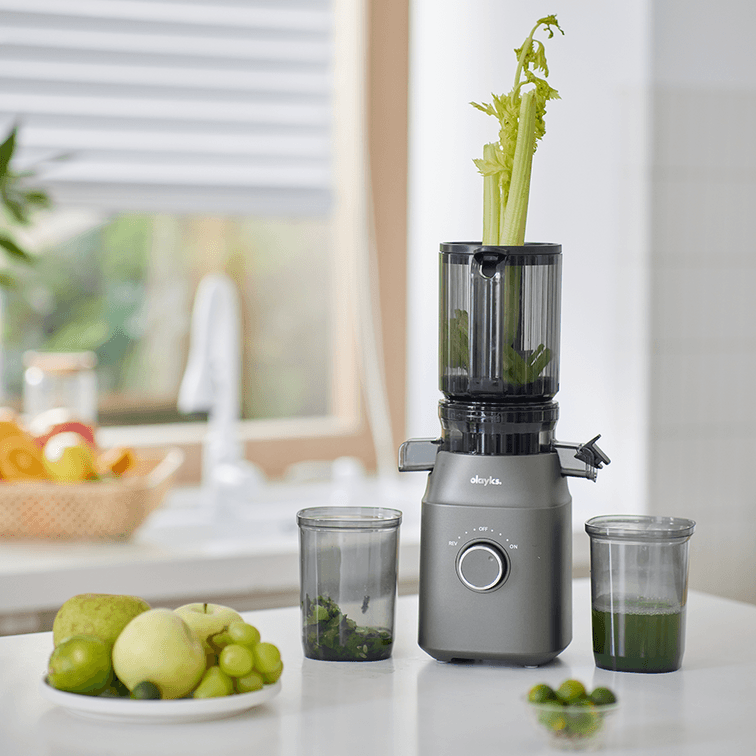 Cold Press Juicer With 4.3inches Large Feed Chute Includes Juice Recipes Easy To Clean Gray