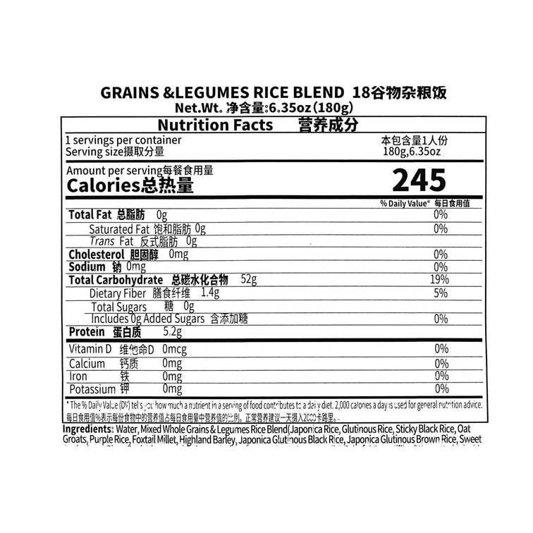 18곡 혼합 밥, 6.3온스 【전자레인지 밥】
