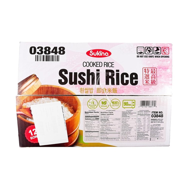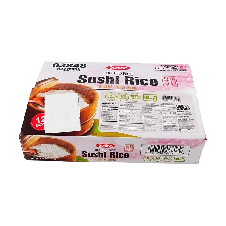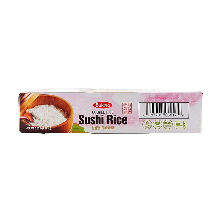 익힌 밥 스시 밥, 12팩, 5.55파운드 【 프리미엄 등급 흰쌀】 【전자레인지 조리 가능 밥】 【 비건 】
