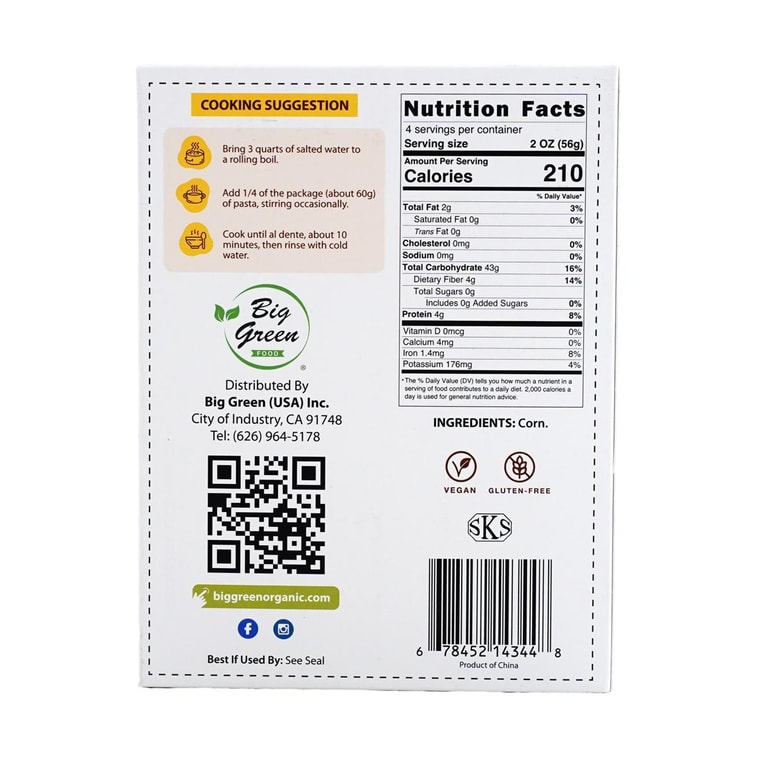 옥수수 펜네, 250g (8.81oz) 【비건】【글루텐 프리】