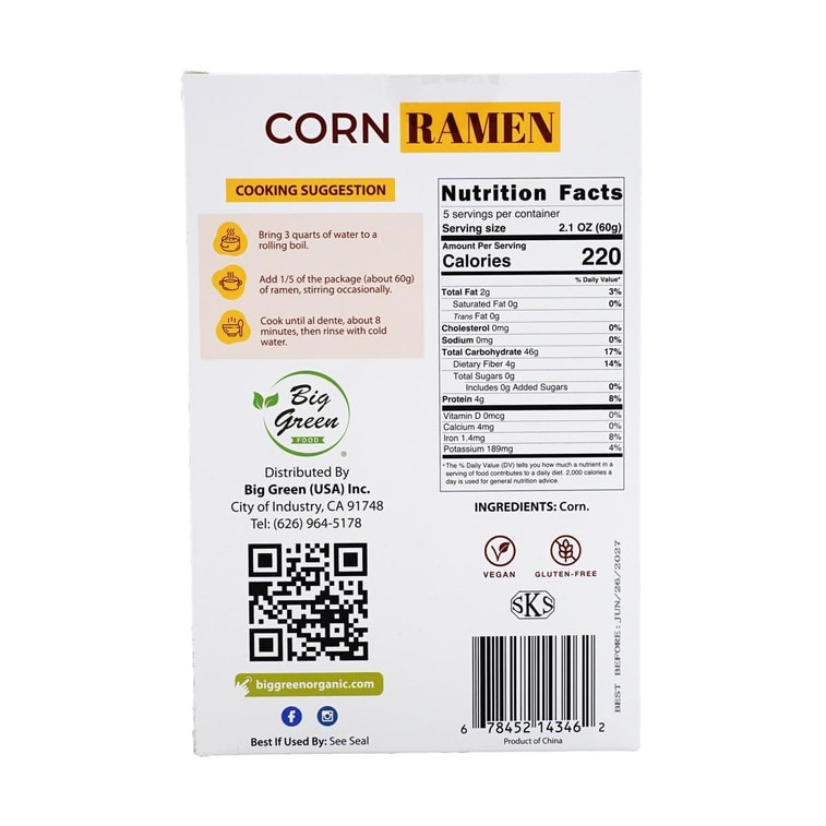 옥수수 라면, 290g (10.58oz) [비건] [글루텐 프리]