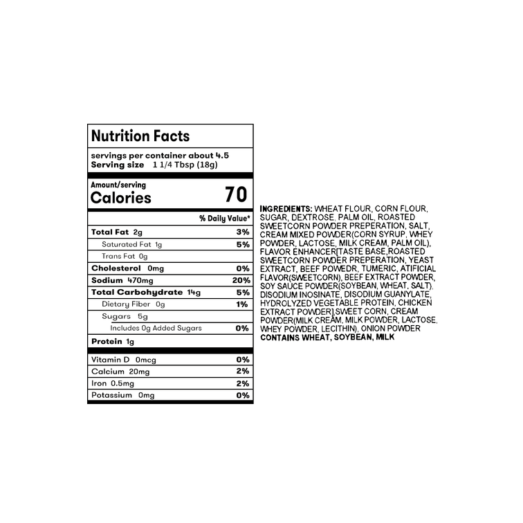 | 맛 | 옥수수 수프 가루 |