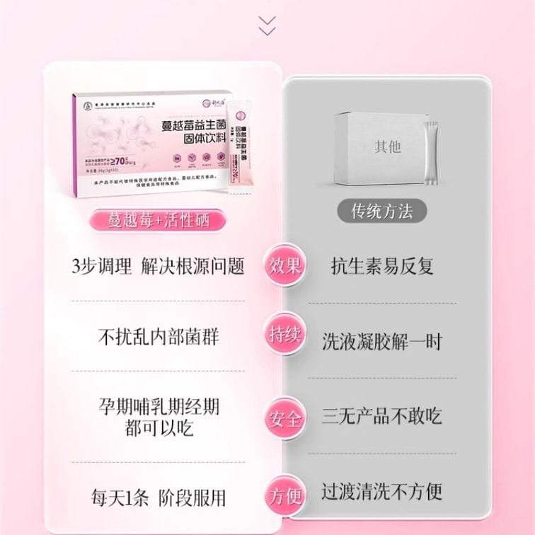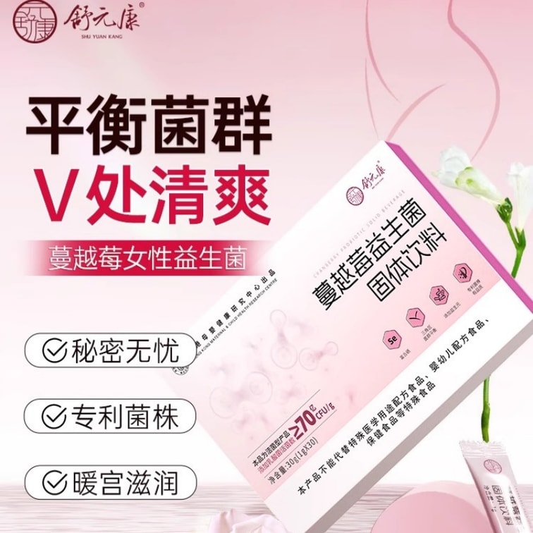 [중국 직배송] 슈위안강 크랜베리 프로바이오틱스 캡슐 여성용, 친밀한 부위 구강 관리를 위한 유산균 분말, 1g*30포