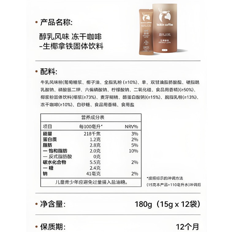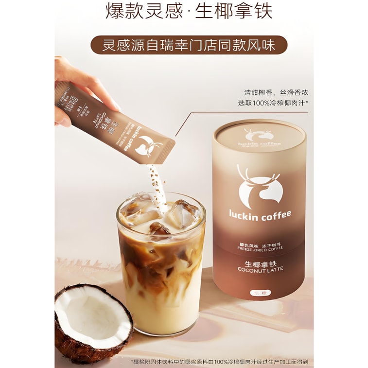 [중국 직배송] 루킨 커피 밀크맛 동결건조 커피 - 코코넛 라떼 고형 음료 180g (15g*12개입) | Yami