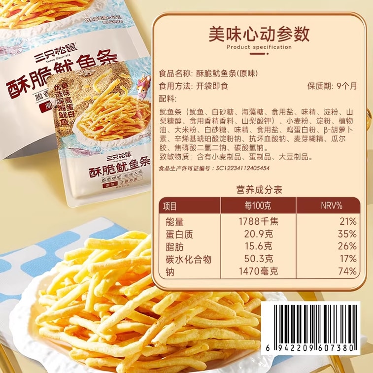 Crispy Squid Sticks, Ready-to-Eat Squid, High-Protein, Individually Packaged, Snack Craving Sea Flavor, Crispy Squid Sticks 100g*1 Bag