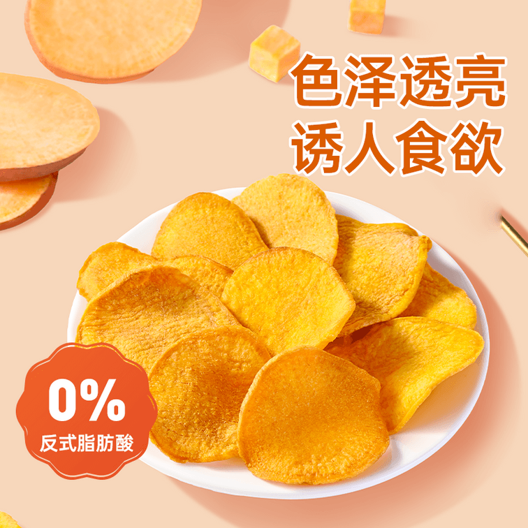 "천연 고구마의 단맛이 바삭하고 건강한 슬라이스로 변신합니다."