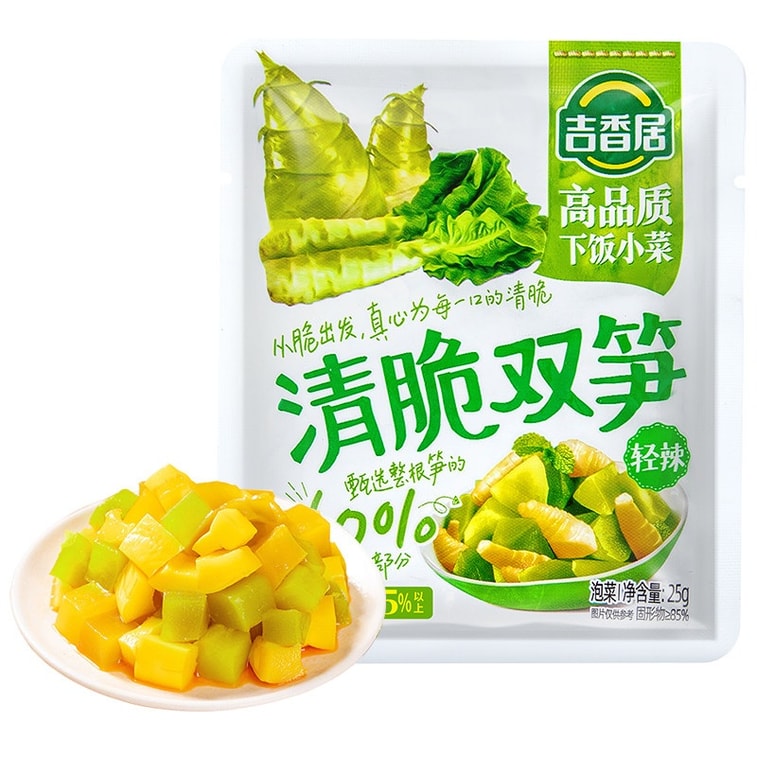 [중국 직배송] 지샹주 바삭한 죽순 절임 25g*10팩, 밥이나 죽과 함께 곁들여 먹기 좋은 작은 포장의 절임 채소로, 전채 요리나 간식으로 제철 음식입니다. 쓰촨 지방의 특산품입니다.