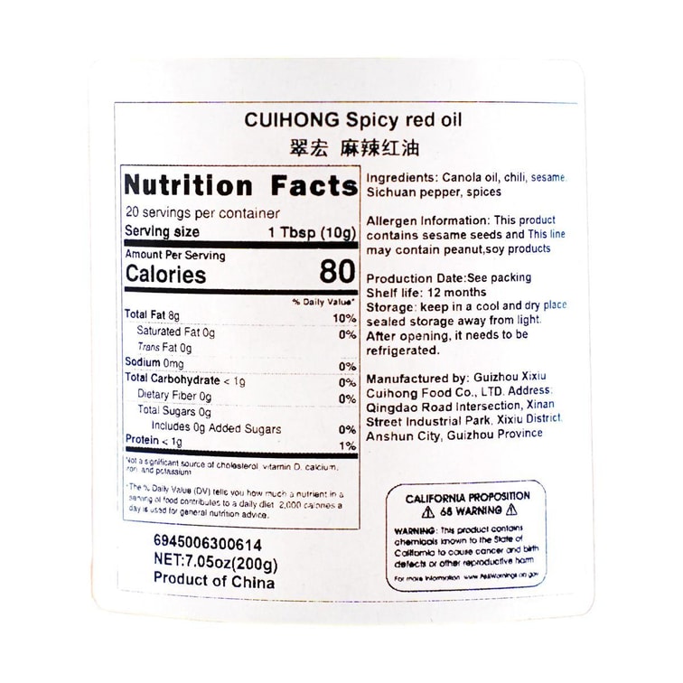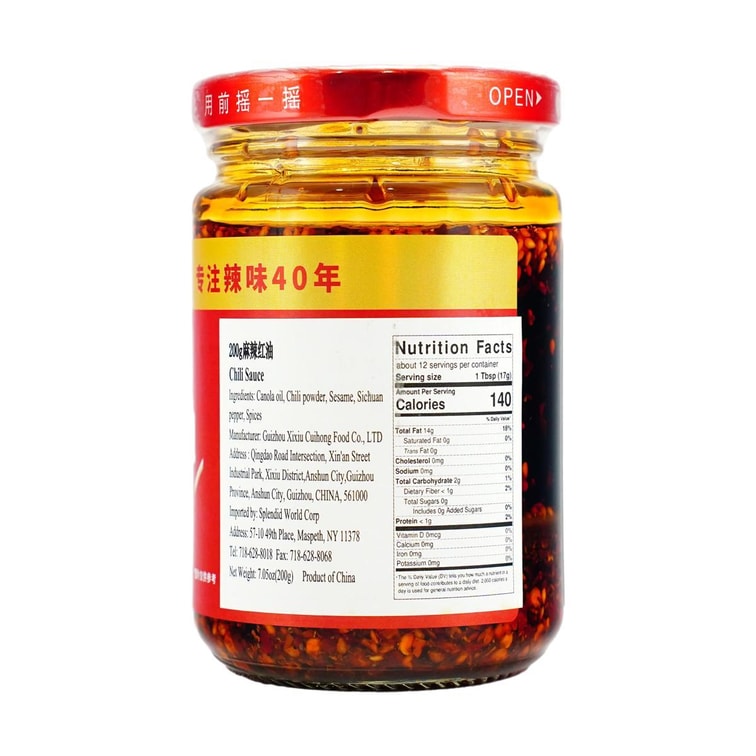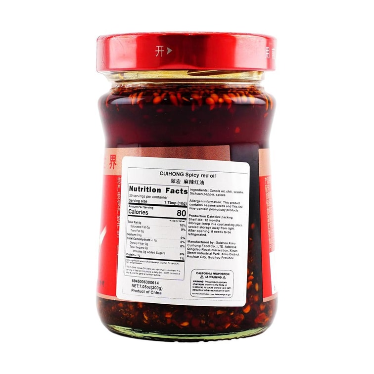 매콤하고 매운 맛 칠리 오일, 7.05온스