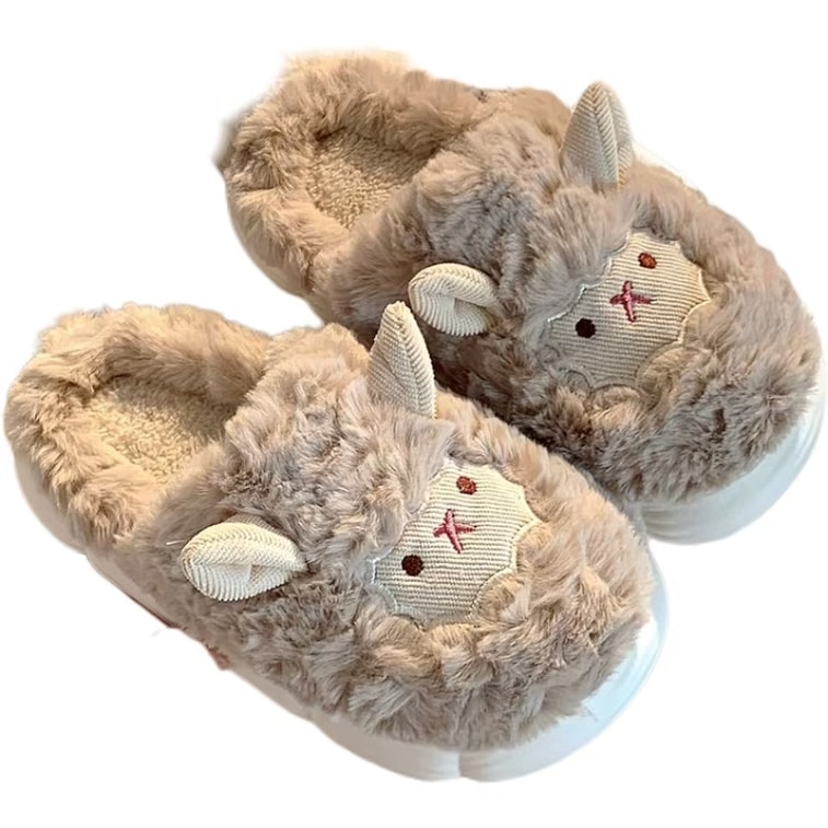 [중국에서 온 다이렉트 메일] FOXTAIL Love Little Sheep 가을 겨울 면 슬리퍼 여성 힐 덮힌 감금 신발 미끄럼 방지 모피 슬리퍼 - 굽 덮지 않음 브라운 38-39 (보통 37-38에 적합) 1 쌍 *|예상 도착 시간 3- 4주