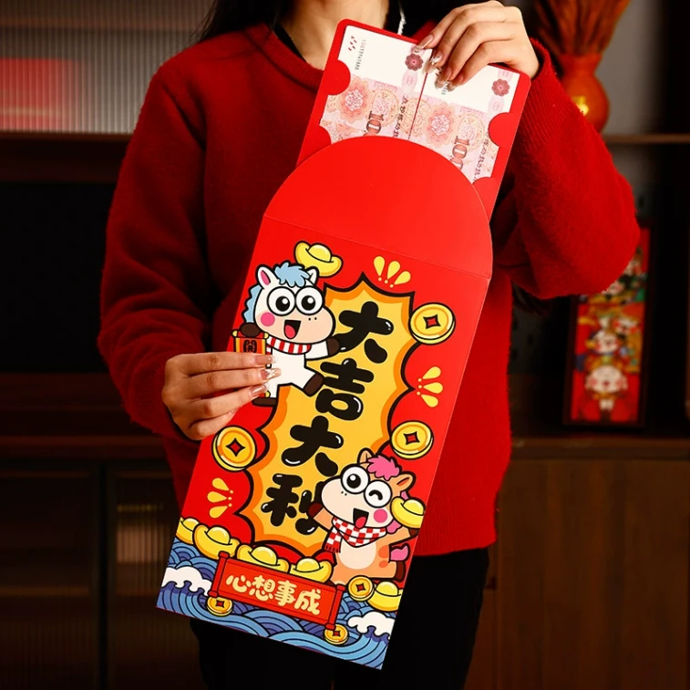 타임스우드 특대형 붉은 봉투 - 행운과 번영 (1개) - 말띠 해(2026년)를 위한 길조와 놀라움을 선사하는 선물 - 설날과 춘절을 위한 새해 붉은 봉투