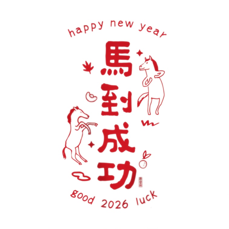 오리지널 제품 라이프스타일 귀여운 새해 정전기 스티커 - "도착 시 성공" / 2026년 말띠 해 - 빨간색 축제 - 유리창 및 문 스티커