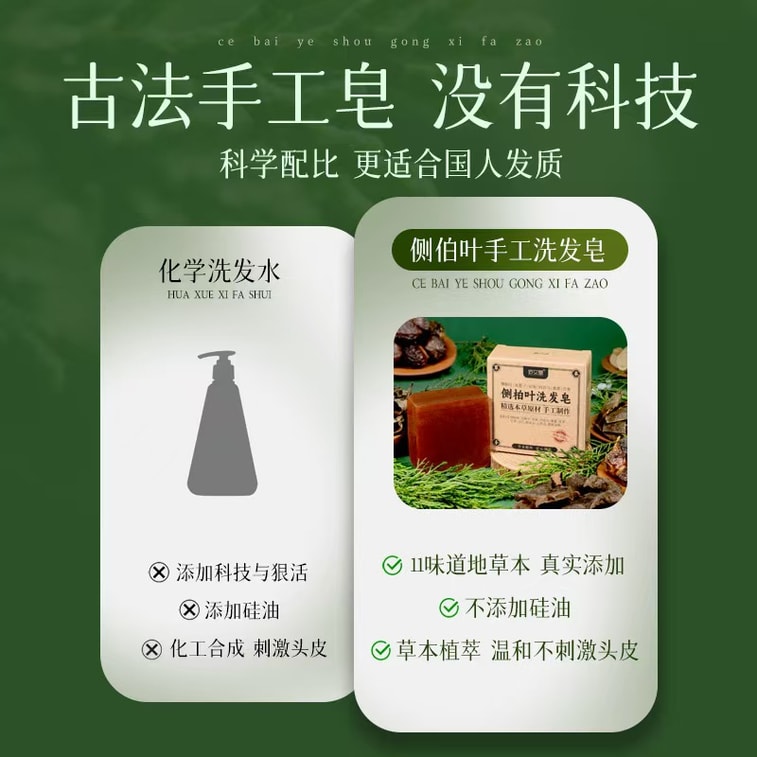 MiaoAiTang 먀오아이탕 핸드메이드 솔리드 샴푸 바 (아보르비테잎, 길경, 다래나무, 고삼 추출물 함유). 엄선된 10가지 이상의 식물 추출물로 만들었습니다. 풍성하고 아름다운 머릿결을 위한 허브 두피 트리트먼트. 100g | Yami