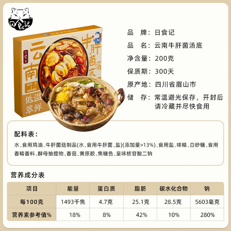 정통 운남 풍미, 냄비 수프 베이스에 적합