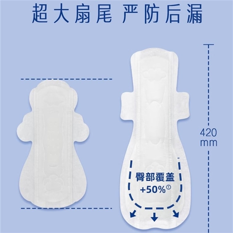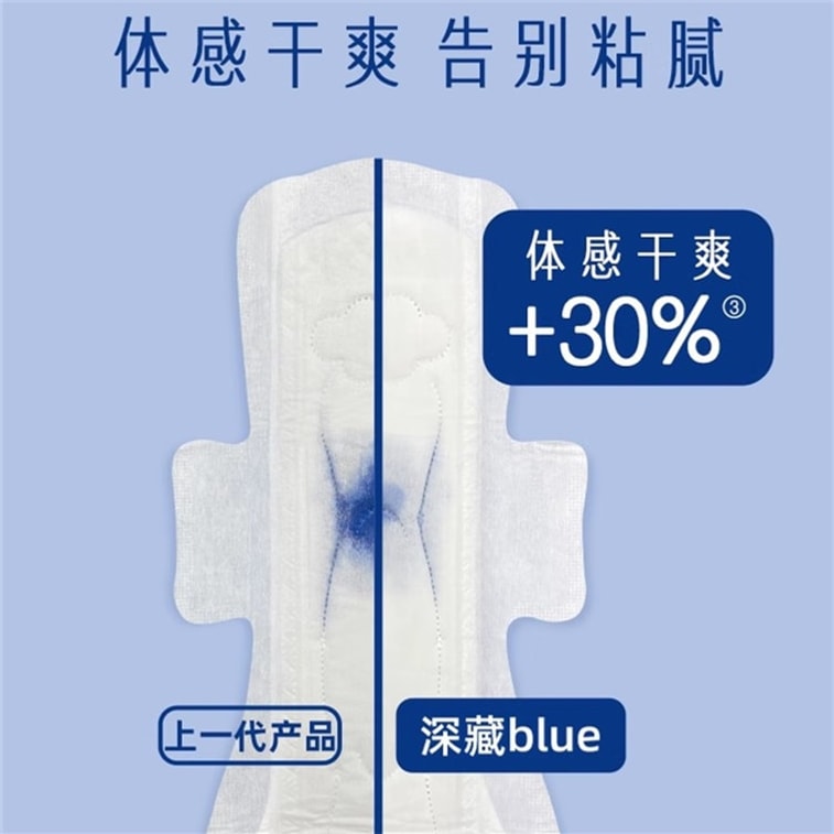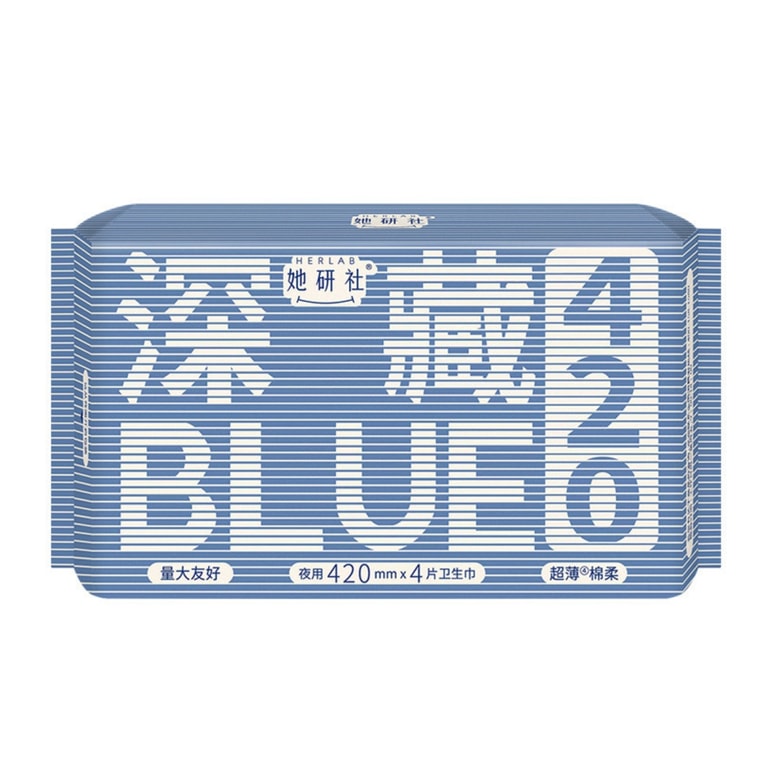 Her Research Society Deep Blue 생리대 (야간 사용 가능, 대용량, 초박형, 부드러운 소재, 420mm, 패드 4개)