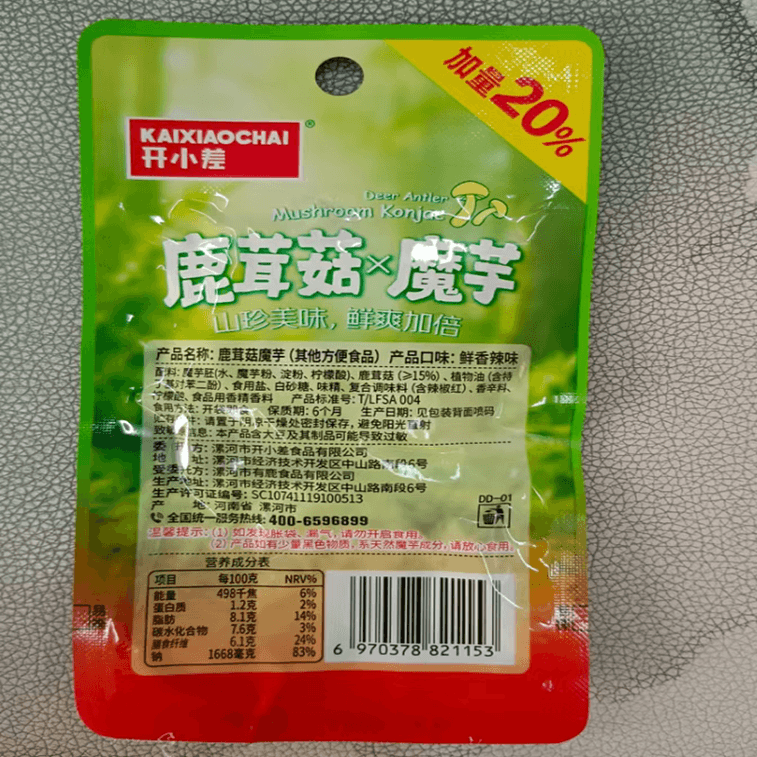 Deer Antler Mushroom Konjac Spicy Snacks, Childhood Flavor, Popular Online Snack, Spicy Flavor, 18g*10 Bags