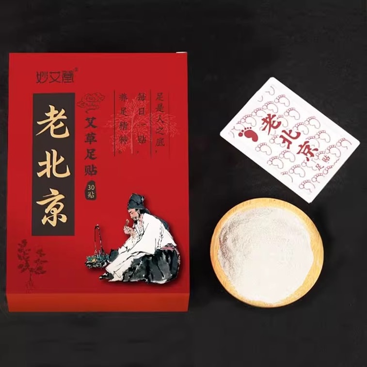 MiaoAiTang 묘아이탕 옛 베이징 쑥 발 뜸 패치 (30개입) - 발바닥 용천혈에 붙이는 뜸 패치 - 습기 제거, 해독, 발을 따뜻하게 하고 숙면을 촉진합니다. | Yami