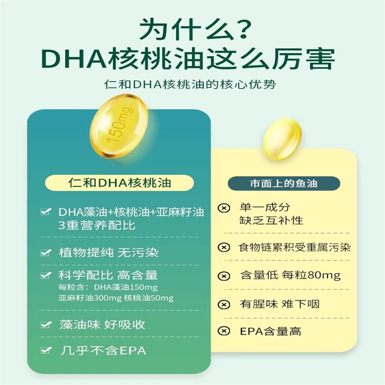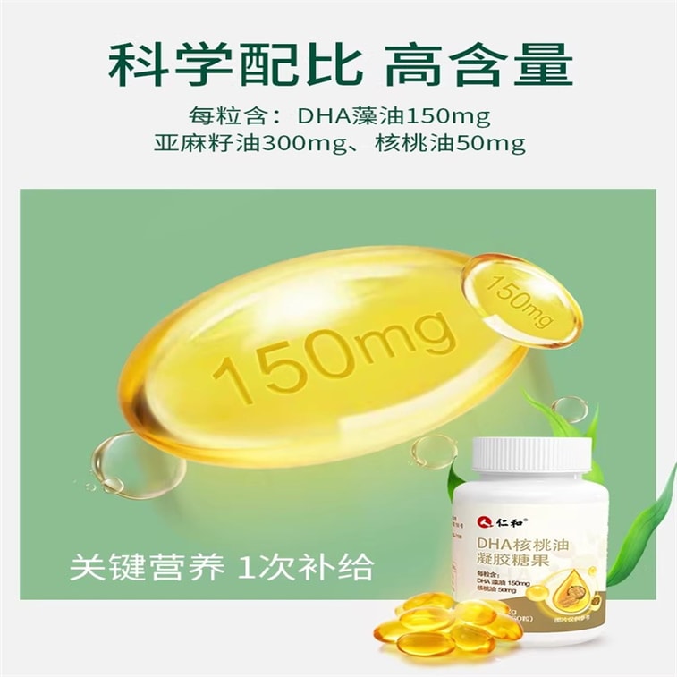 [중국 직배송] 런허 DHA 호두 오일 해조류 오일 젤 캔디 60캡슐/병