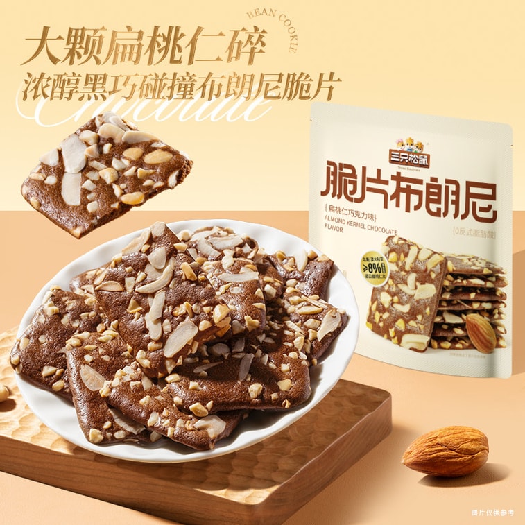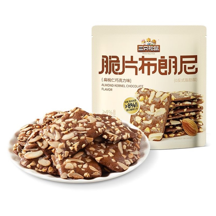 [중국 직배송] 쓰리 스쿼럴스 크리스피 브라우니 60g - 아몬드와 초콜릿이 들어간 바삭한 비스킷 - 사무실 간식, 설날 간식으로 제격