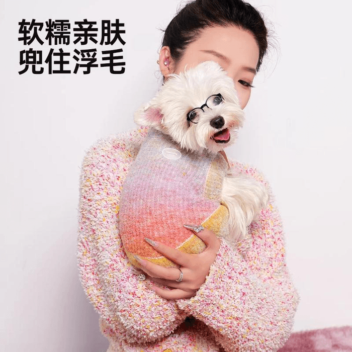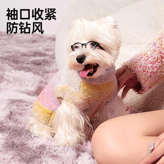 [중국 직배송] TOUCHDOG 일본 가을/겨울 강아지/고양이용 스웨터 및 조끼, 따뜻한 반려동물 의류, 알록달록한 공 장식, 사이즈 M