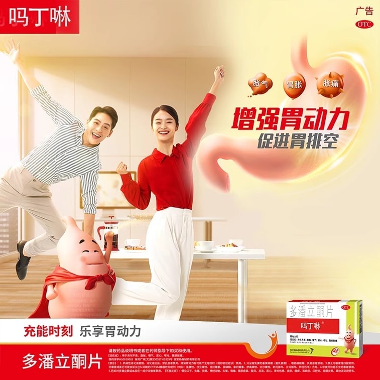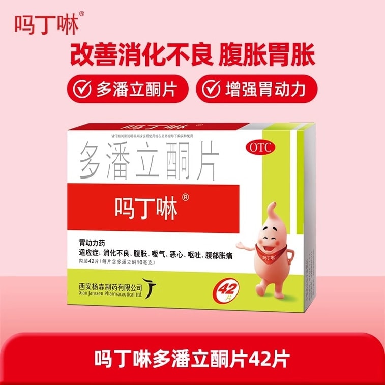 중국 직송: 소화불량, 복부팽창, 복통, 복부팽창에 효과가 있는 도페리돈(상자당 42정)