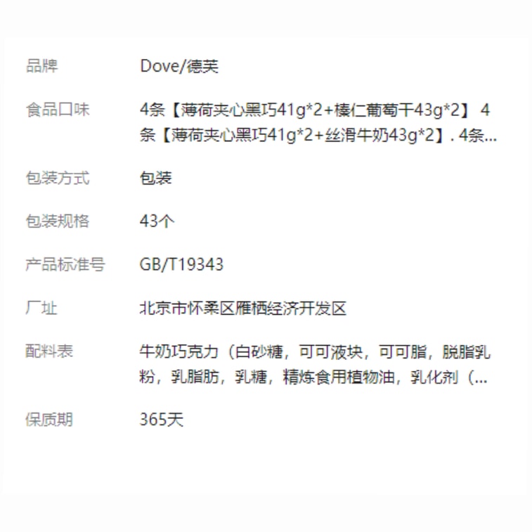 [중국 직배송] 도브 모카 아몬드 43g*4개