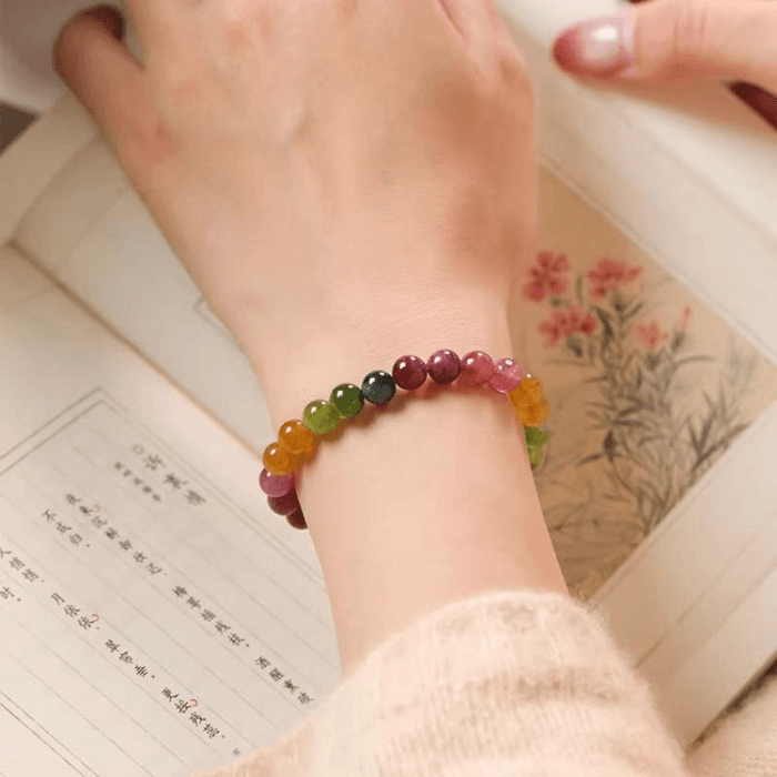 [중국 직배송] 링인 사원 축복 [취화풍] 천연 투르말린 여성용 팔찌, 재물과 행운을 불러오는 만능 팔찌, 14+1cm | Yami